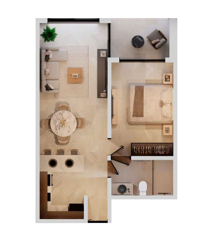 1 RECAMARA + 1 BAÑO + 1 BALCÓN