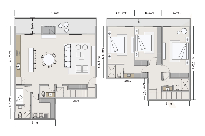 3 Recámaras + Cuarto de Servicio